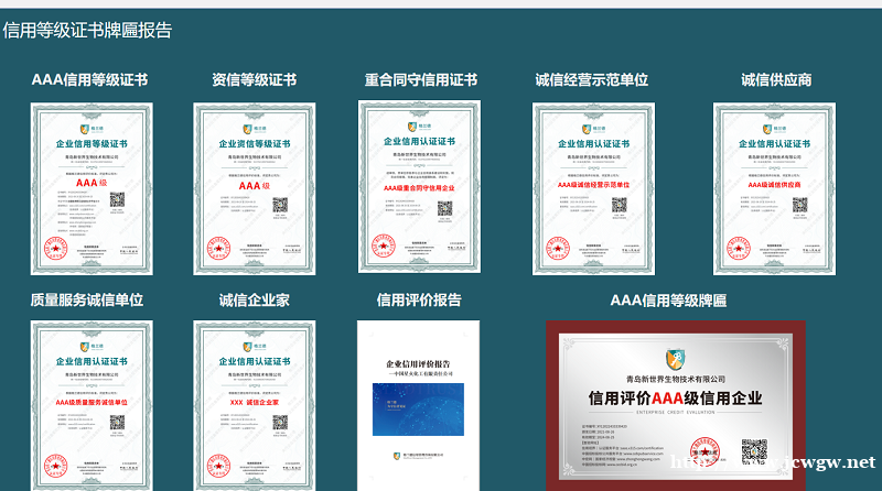 1、AAA信用等级证书